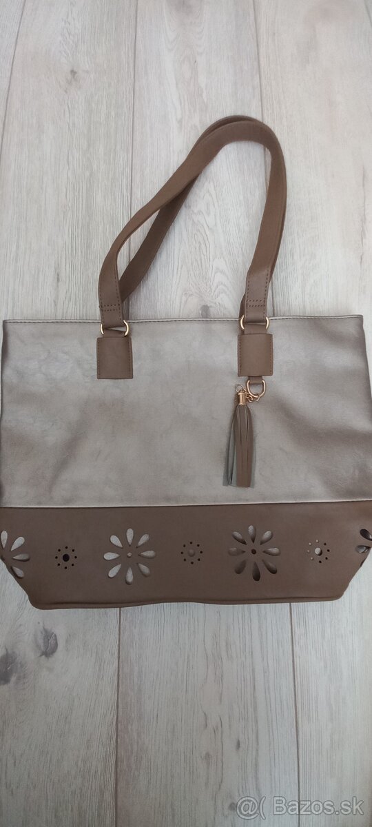 Predám NOVÚ hnedozlatú letnú kabelku s rozmermi šírka 40cm, výška 29cm, dĺžka rúčky 28cm. Vnútri jedna priehradka so zipsom na boku.