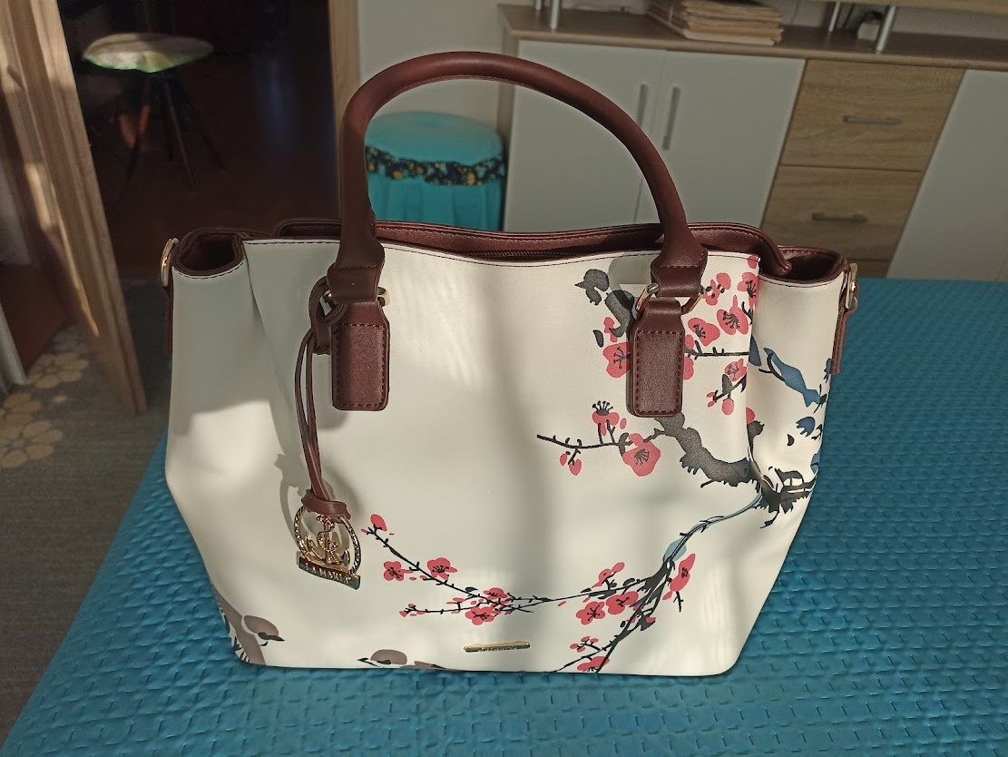 Predám elegantnú priestrannú kabelku,úplne novú. Pôvodná cena 45 euro,. Zadná strana hnedá, vo vnútri 3 vrecká, jedno na zips . Odnímateľná dlhá rúčka na rameno.Dohoda možná.