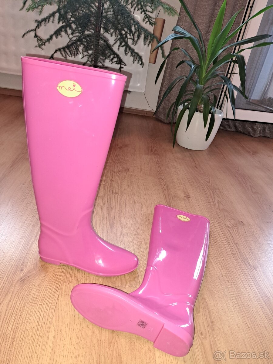 Gumové čižmy do dažďa 35/36. Vn.dlzka sa zmerať nedá, ale spodok podrážky má max.23,8cm, takže vnútro rátam, že bude mať cca 23cm. Talianska značka Mei.