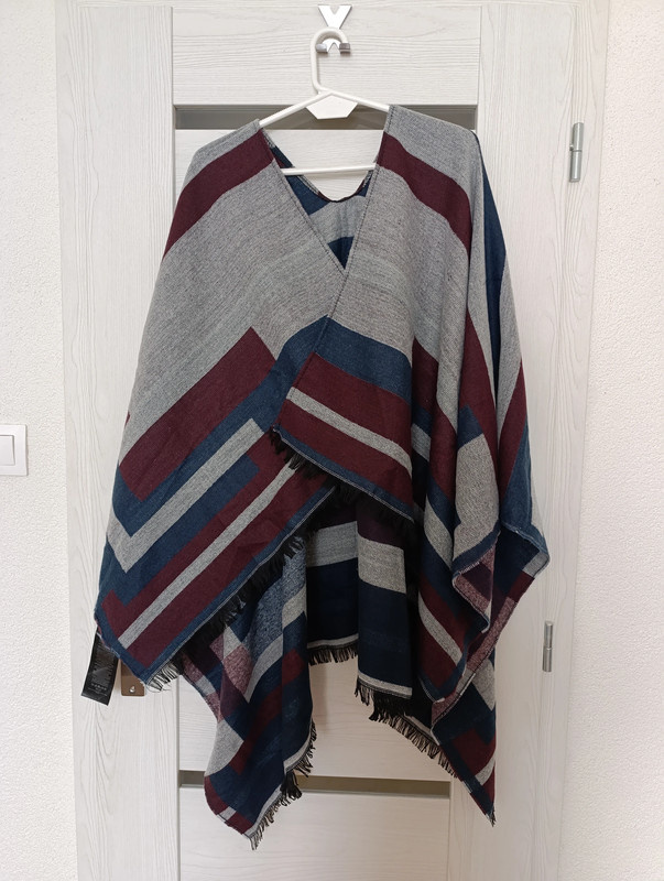 Pončo je úplne nové, nenosené. Má dierky, vhodné na použitie opaska. Super kúsok.