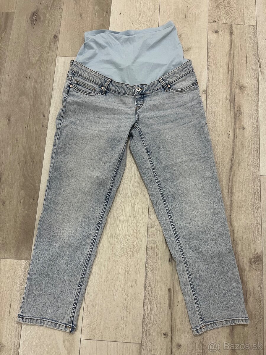 Predam tehotenske rifle, svetle s visackou, tmave bez ale len vyskusane. Velkost 42 tmave, 44 svetle, ale pri premerani takmer totozne, elasticke. Dlzka 91, sirka 48.