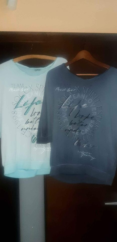 2 tricka s 3/4rukavom rovnakej znacky aj potlace, bledomodre a sedomodre. Volnejsi strih so spodnym patentom, vhodne na kazdodenne nosenie. Material je ako tensia teplakovina, velmi prijemny na nosenie, zaujímavé farebné kombinácie.