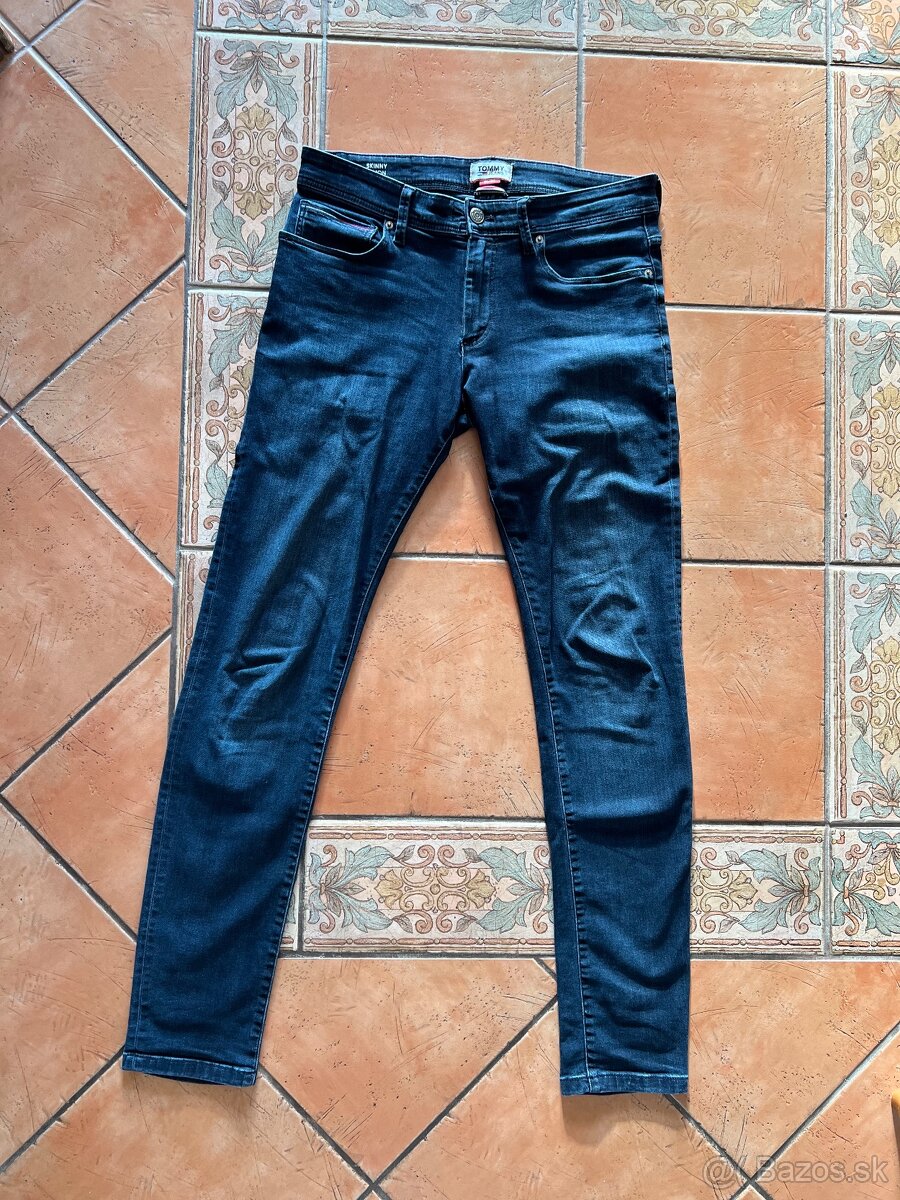 Predám pánske tmavo modré rifle značky Tommy Jeans.Model Skiny Simon. Veľkosť W31 L34. Sú eleasticke. Nosené, ale vo výbornom stave.