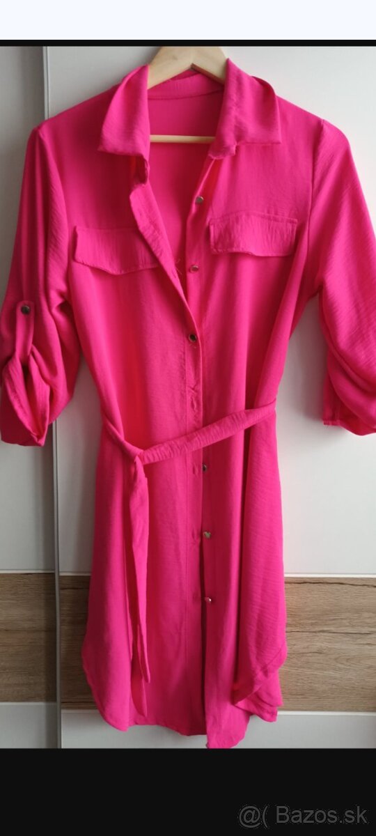 Košeľové šaty - [20.12. 2025]Nenosené šaty, veľkosť M, celková dĺžka šiat je 80 cm. Súčasťou šiat je aj opasok. Značka Fisherfield.