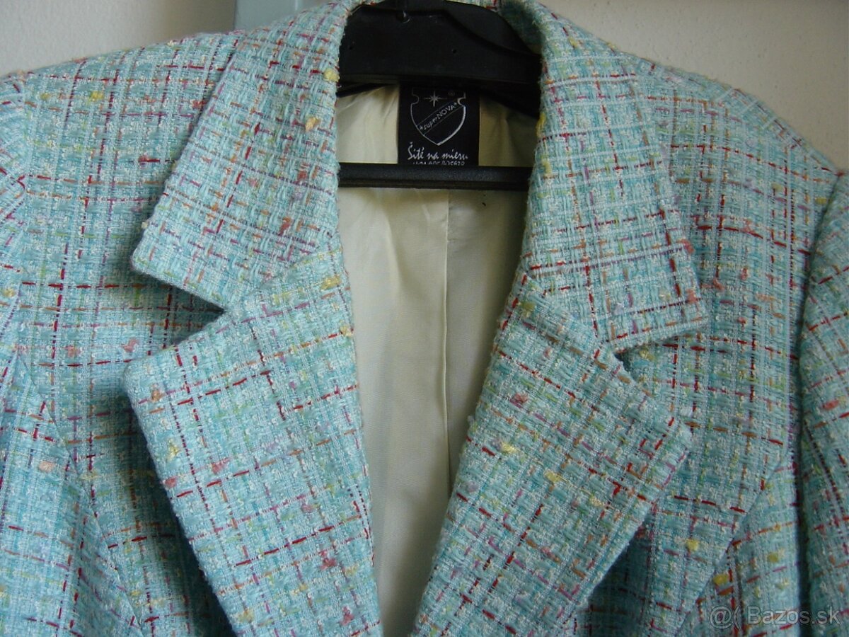 tvídové sako dámske mentolová farba, podšité horná šírka 57cm, rukáv 57cm velkost 48/50= 23 eur