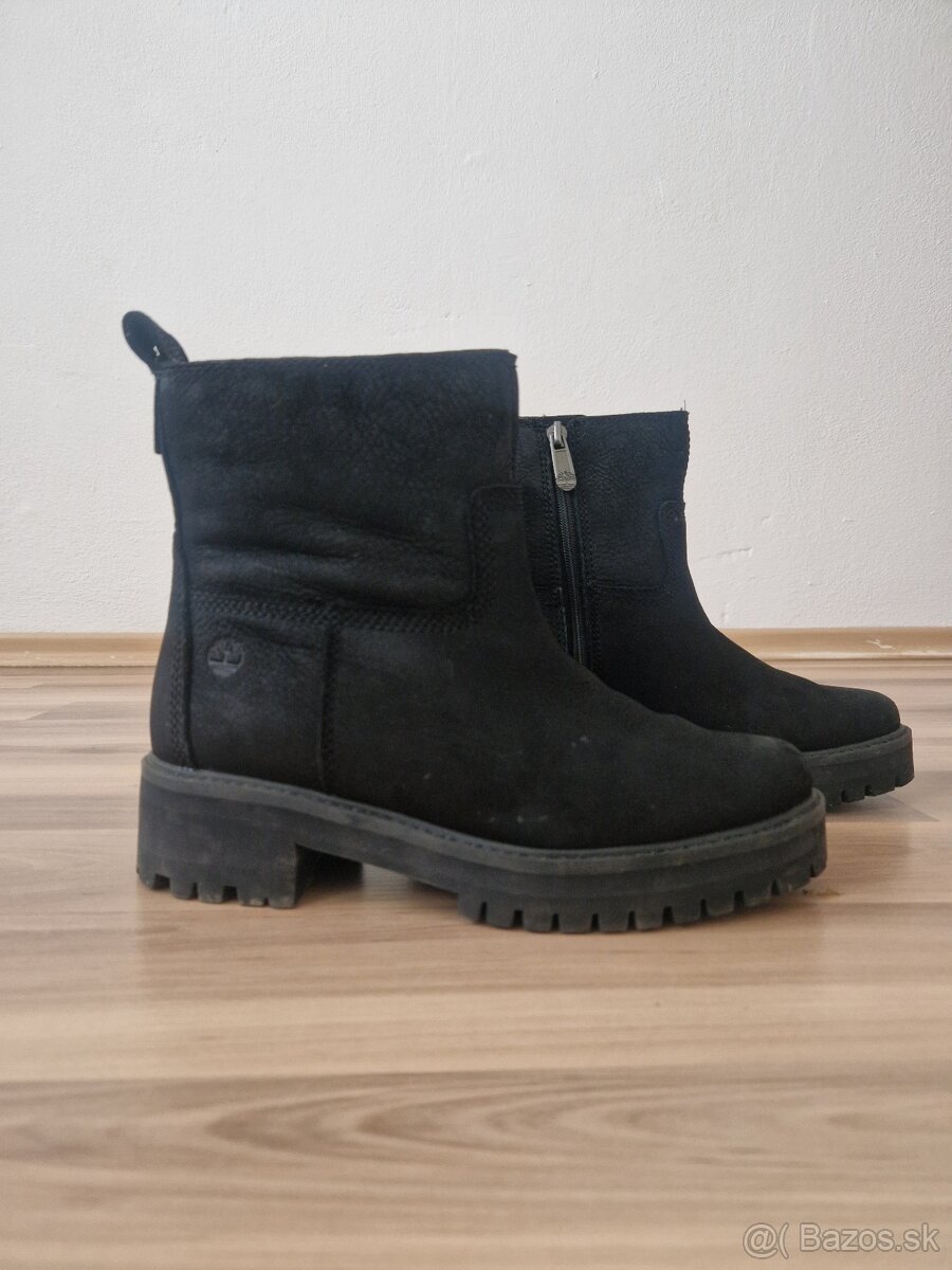 Predám raz obuté zimné zateplené čierne nubukové čižmičky značky Timberland, veľkosť č.38, cena 20 €+ poštovné.