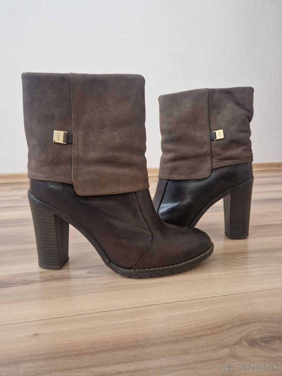 Predám čokoládovohnedé členkové čižmy značky Carinii, veľkosť č.39, výška opätku 9,5 cm, zateplené flísom, cena 10€+ poštovné.