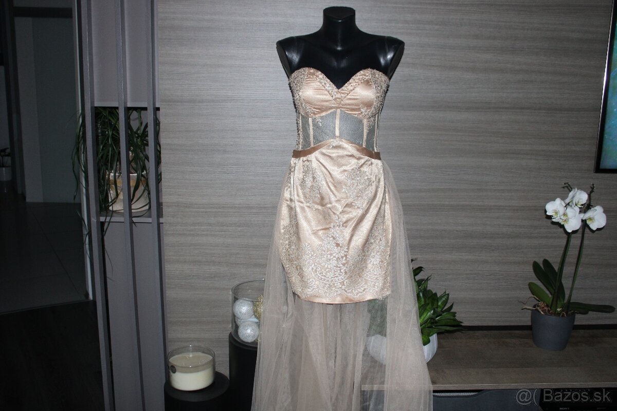 Pekne, raz oblecene damske saty PAULA RICHI vel.sedia na XS - na chrbte snurovacka, krajka, vysivka, zdobenie.....bezchybne.