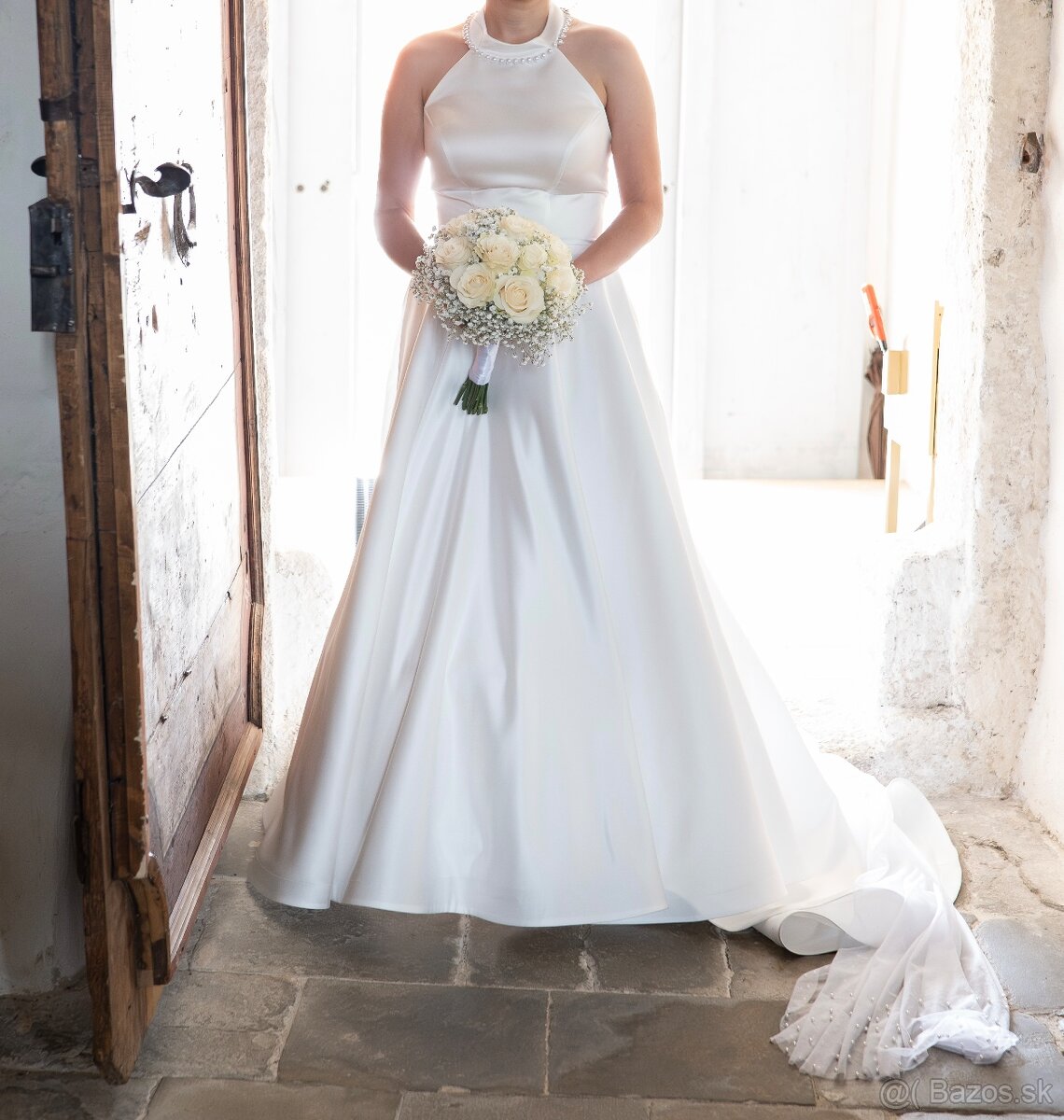 Predám elegantné saténové svadobné šaty – veľ. 38–40