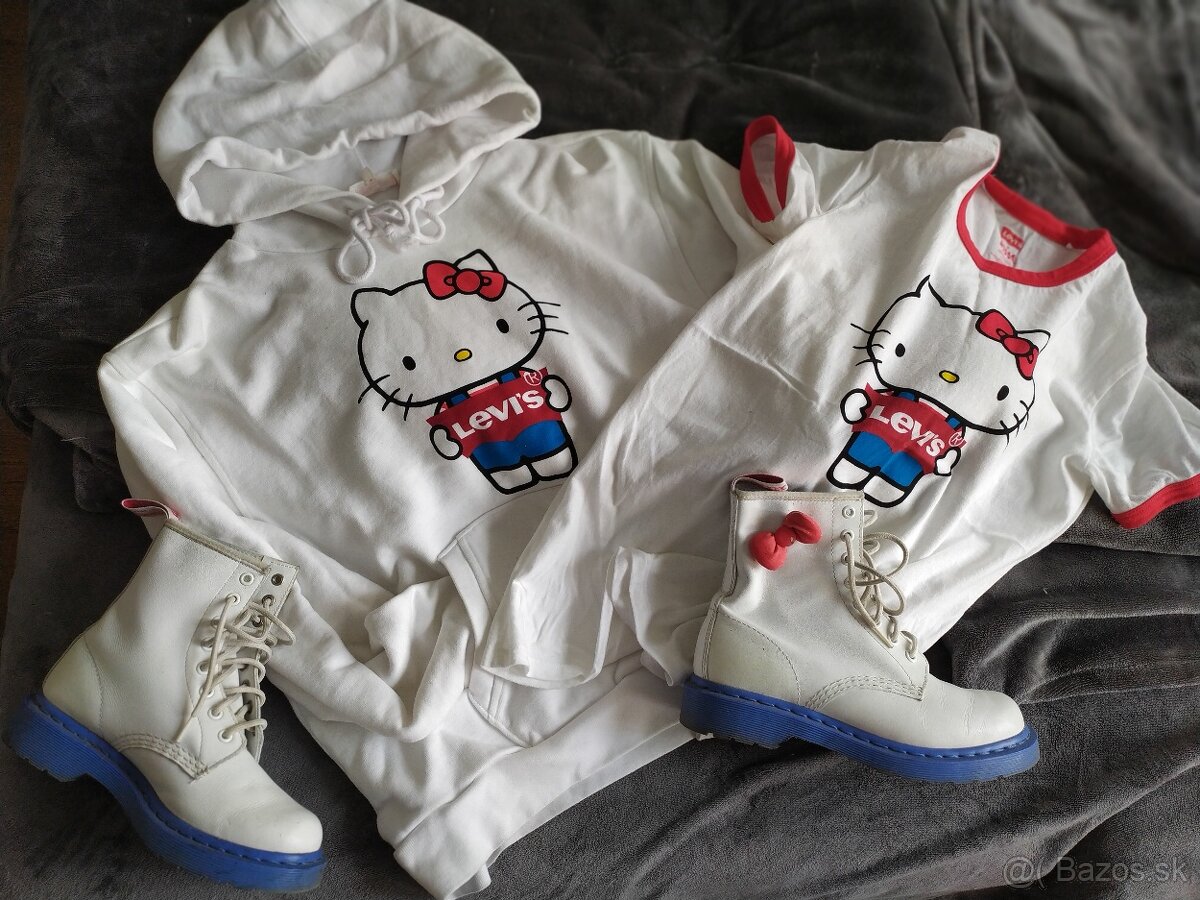 Predám topánky Dr. Martens Hello Kitty vo veľkosti 37. Kožené. Limitovaná edícia. Nosené, no parádu ešte určite urobia. Cena topánky 69€. Mikina a tričko k tomu podľa dohody. Mikina 39€, tričko 19€