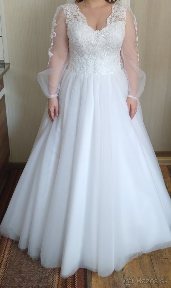 Predám svadobné šaty kupované v salóne, prispôsobené na výšku 162-165 cm. Na fotke postava veľkosť S-M, ale veľkosť šiat sa dá prispôsobiť, pretože majú šnurovačku, sú ideálne aj pre tehotné. Až do 8-9 mes. Majú tiež voľné rukávy. Šaty sú vyčistené a nepoškodené. Najlepšie je šaty si prísť osobne vyskúšať. Vranov nad Topľou, prípadne po dohode Humenné