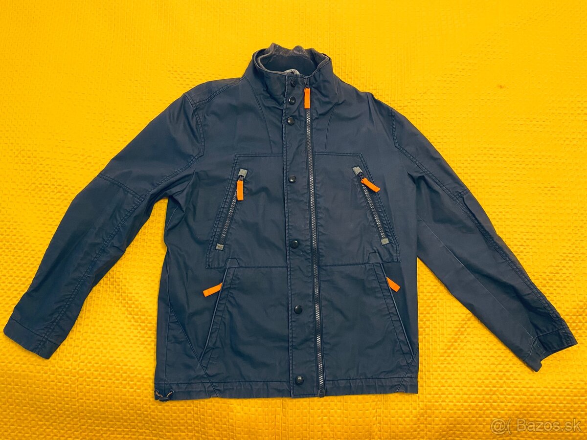 Pánska prechodná tmavomodrá bunda značky S.Oliver, malo nosená. Množstvo vreciek, oranžové detaily