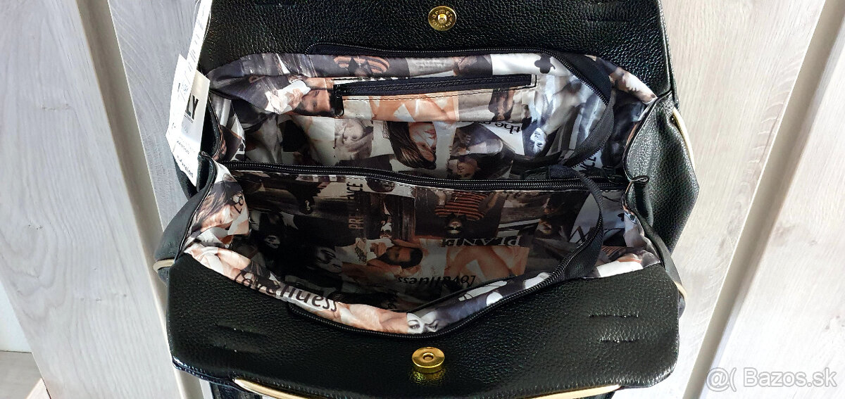 Čierno mäkká kabelka zn.Laura Biaggi so zlatými doplnkami, v.30cm, š.45cm, h.13cm, 2 priehradky, zapínanie na patent aj zips, priestranná, 29€+poštovné.
