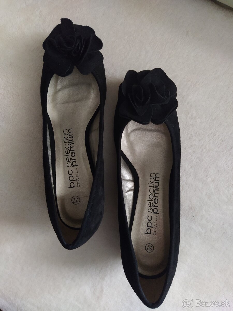 Poštovné v cene. Dámske komfortné baleríny / lodičky. Nové kožené čierne lodičky s klinovým podpätkom. Vrch: čierna brúsená koža. Veľkosť: 36 aj sedí; ale písaná veľkosť je 37 a preto sú mi malé. Bez krabice, z pravej kože, pohodlné a krásne. Boli objednane cez internet. Na dobierku neposielam; pošlem až po prevode peňazí na môj účet. Cena je 45 EUR a je pevná. Ak inzerát je zverejnený = ešte aktuálny. Len vážni záujemcovia!!! Telefónne číslo je vymyslené. Kontaktujte ma prosím prostredníctvom mailu.