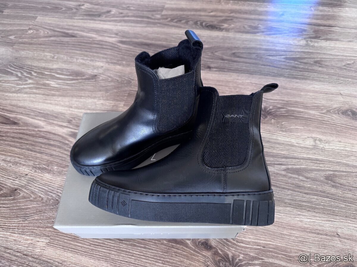 Predám nové len vyskúšané Gant dámské kožené chelsea topánky Snowmont veľkosť 40. Topánky Chelsea z kolekcie Gant vyrobené z prírodnej kože. Model s vystuženým zvrškom poskytuje chodidlu stabilitu.