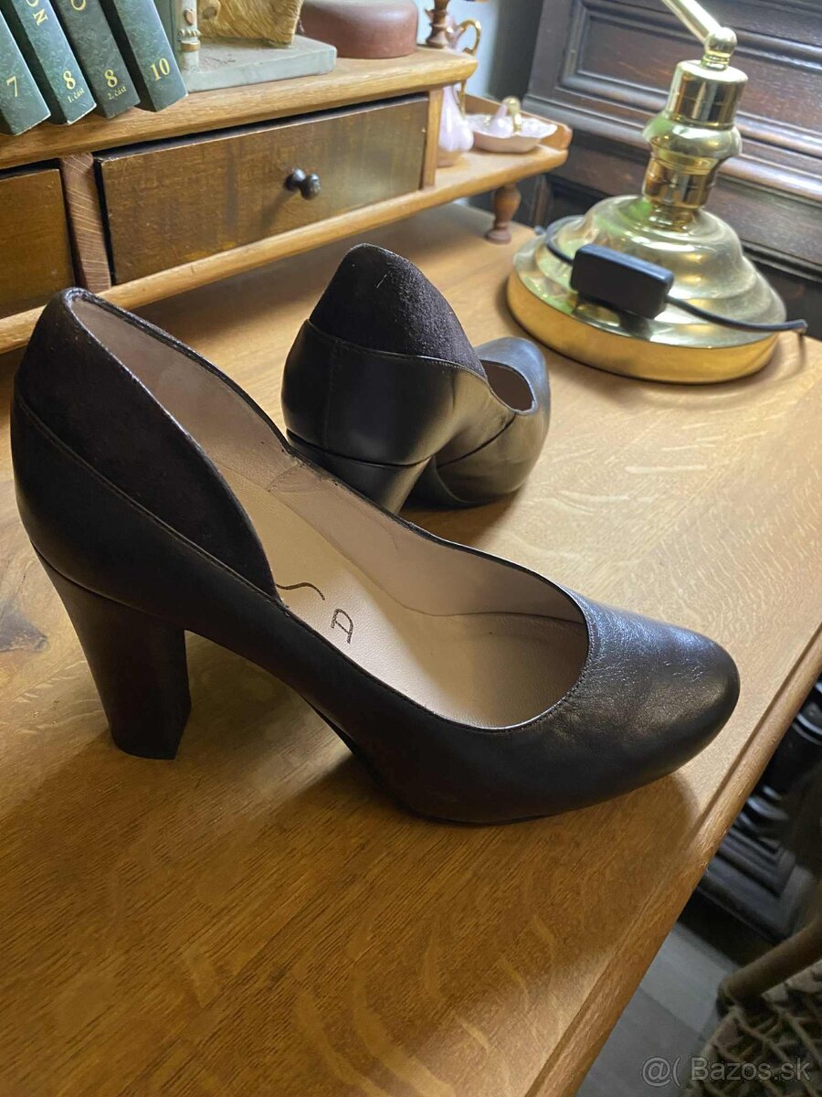 Krásne luxusné topánky, dobre držia a vyzerajú na nohe, pôvodná cena 120€. Materiál: pravá koža. Dĺžka topánok 37, výška opätku 10cm.