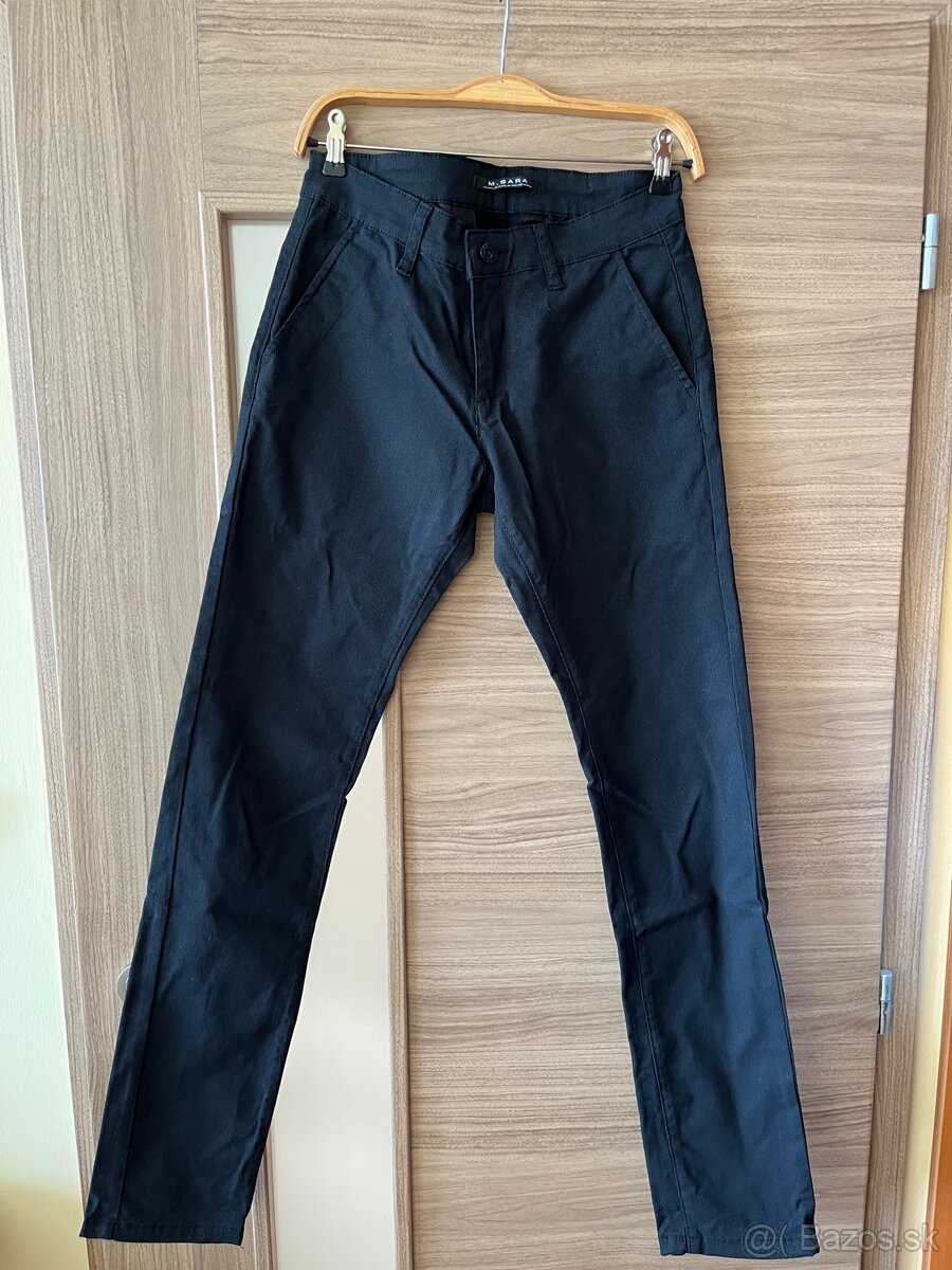Čierne pánske nohavice. Veľkosť 29. Nosené minimálne. Dlžka 104 cm, vnútorná dĺžka 81 cm, šírka pás 35 cm.