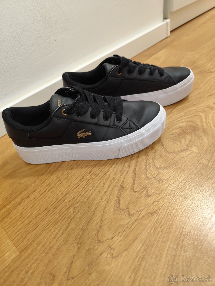 Predám dámske tenisky Lacoste čierne s bielou platformou, veľkosť 38. Boli málo používané, sú vo výbornom stave. Kúpené v Office shoes, pôvodná cena 89,95€. Cena pri osobnom odbere v Bratislave je 30€, v prípade zaslania Packetou je cena 35€.