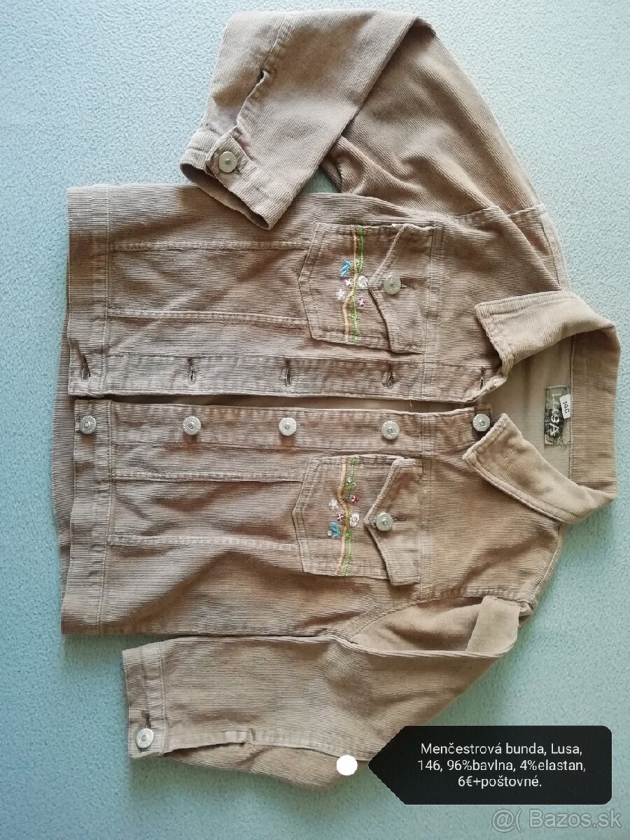 Predám malo nosenú menčestrovú (prací kord) bundu bledohnedej farby, 146, zn. LUSA: