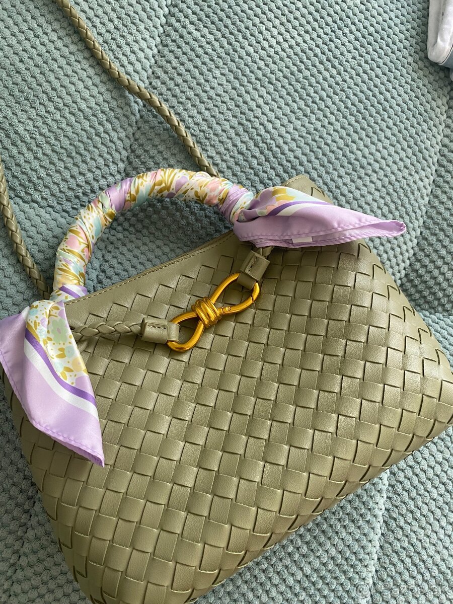 Kabelka v khaki farbe. Nová, nenosená, žiadne poškodenia. Dá sa nosiť crossbody alebo na rameno. Popruh je nastaviteľný ale neodnímateľný, plus má rúčku na nosenie do ruky. Šatka je v cene, dá sa odstrániť. Zapínanie na magnet. Rozmery 28x19x9cm. Cena spolu s poštou 15€. Posielam cez packetu.