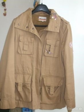 prechodná bunda (kabátik), velkost L,celková dľžka 72 cm, dľžka rukáva 62 cm, obvod cez prsia 92 cm. Ma 4 vrecká, na golieri,jednom rukáve a vrecku ma zaujímavú aplikáciu vyšitú korálikmi.Oblecená bola asi 5x, je zachovalá, len trochu na foto pokrčená