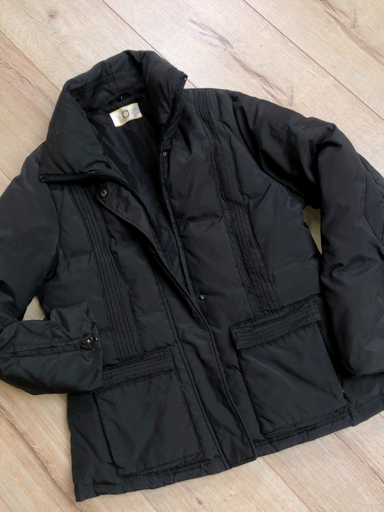 - čierna bunda, perfektný stav ako nova, zn OPD, husacie paperie 80/20 , lahučka a super teplučka, paperie aj v limci, krasne prepracovana, prešívaná, zips aj na rukavoch pri zapastí, vačky- otvor zhora + poklop a aj z boku+ zips dl 67, š 52, dl rukav 64