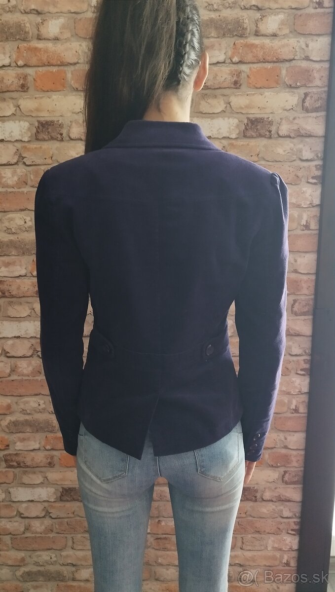 Predám nenosené mančestrové sako fialovej farbi. Veľkosť 38. Dĺžka rukáva 63,5 cm. Celková dĺžka 63 cm.