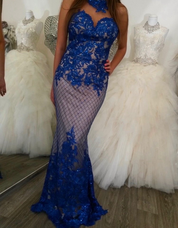 Predam luxusné krajkove šaty v kralovskej modrej farbe, vystuzene, rafinovany strih, nove, velkost 38