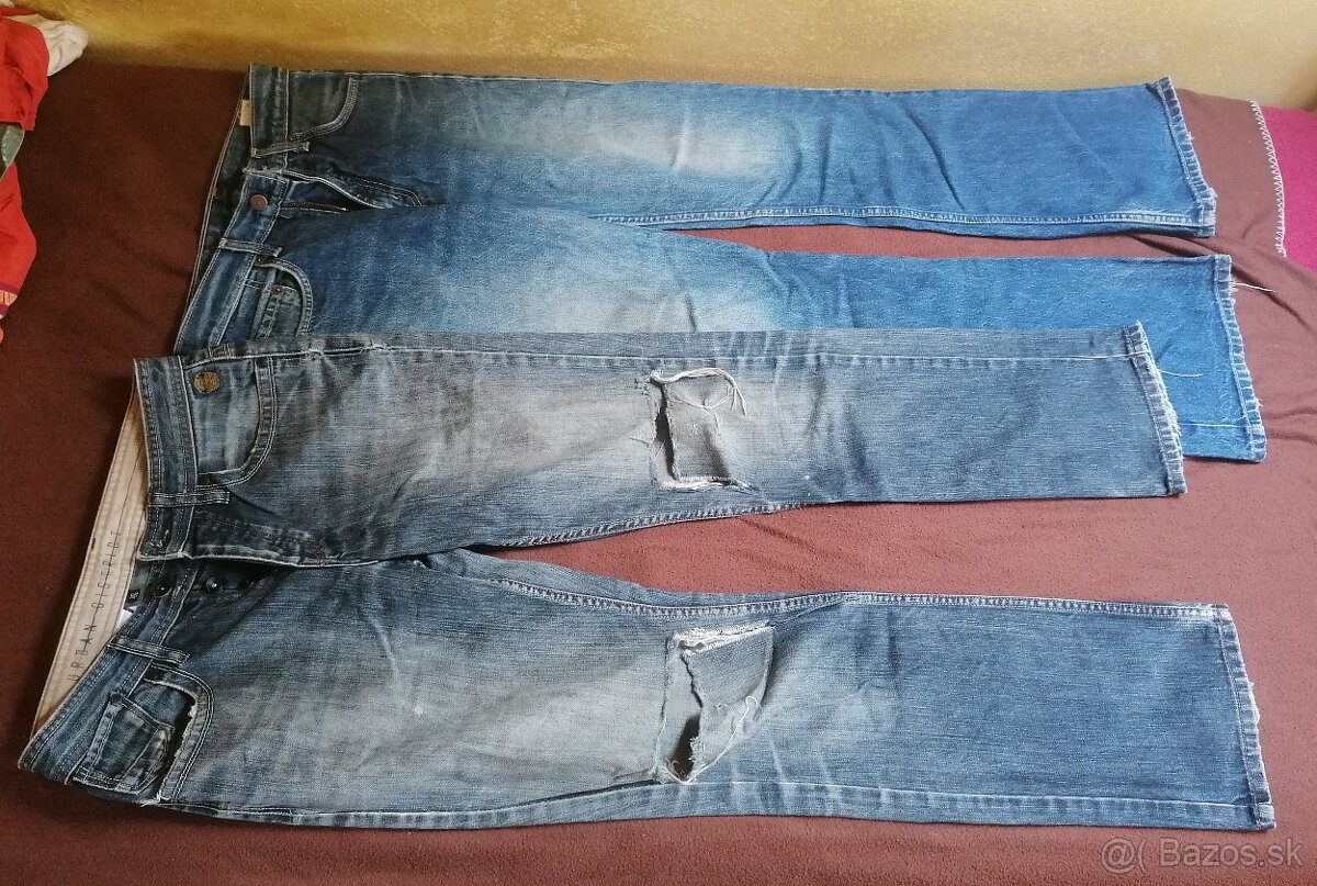 Predám pánske rifle, 2ks. Vrchným neviem nájsť označenie veľkosti ale sú vhodné pre výšku cca 180cm. Spodné sú z C&A, veľkosť 30/32. Nakoľko sú veľkosťou takmer identické uprednostnil by som predaj spolu, v prípade záujmu sa dá aj po kuse. Cena spolu 5€, po kuse vrchné 4€, spodné 2€