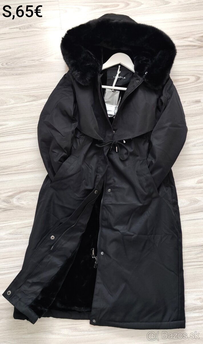 Čierna parka s čiernou kožušinkou dlhá vo veľkosti S, cena 65 eur, nová.
