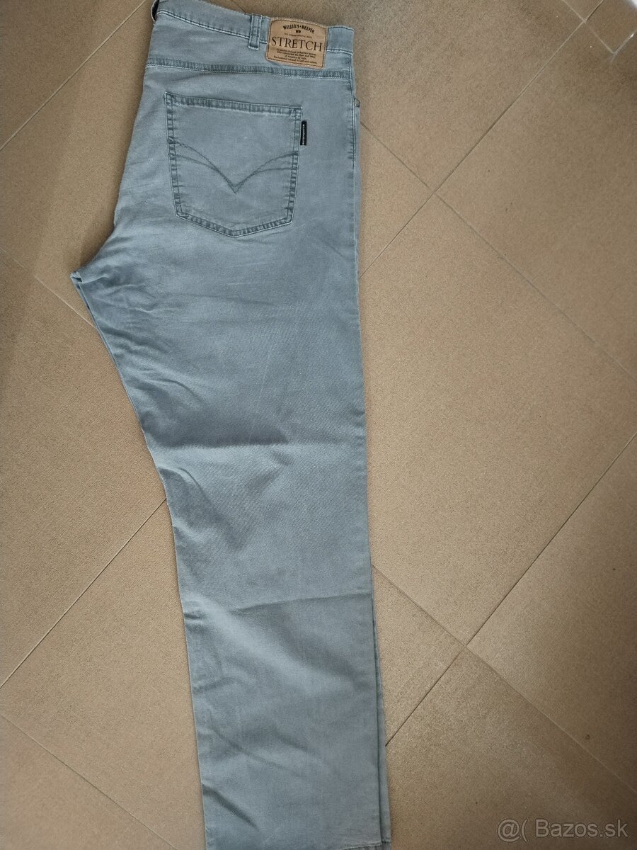 ponúkam na predaj tenké pánske rifle značky William & Delvin, vyrobené z kvalitných materiálov s vysokým podielom bavlny 98% a 2% elastan.Veľkosť 40/34, šedá farba, cena 15 Eur