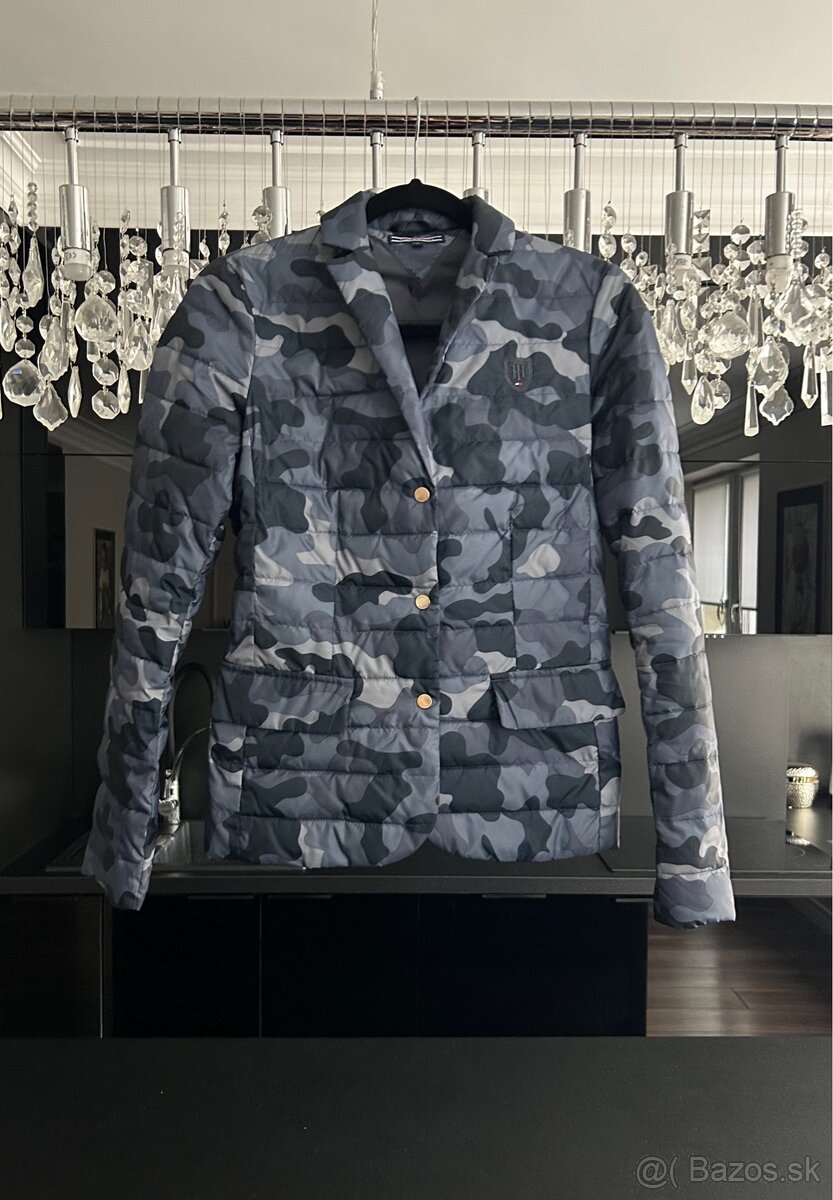 Maskáčového vzoru, modro-šedá kombinácia, so zlatými gombíkmi. Vpredu dve vrecká, vnútri jedno. Vpredu vyšité logo TH.