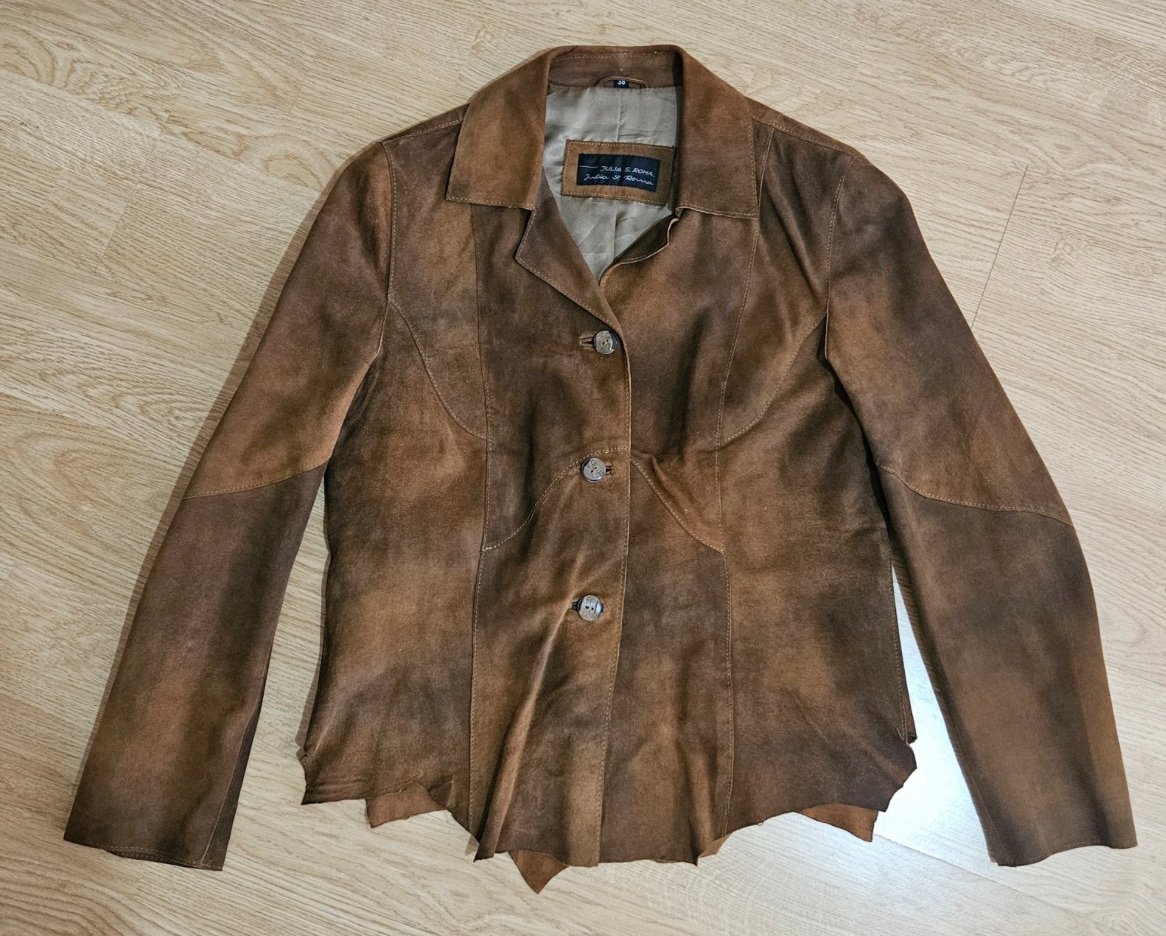 Zaujímavý kožený kabát-sako veľ.38 ale podľa mňa 40/42.Super stav.Na dobierku neposielam.