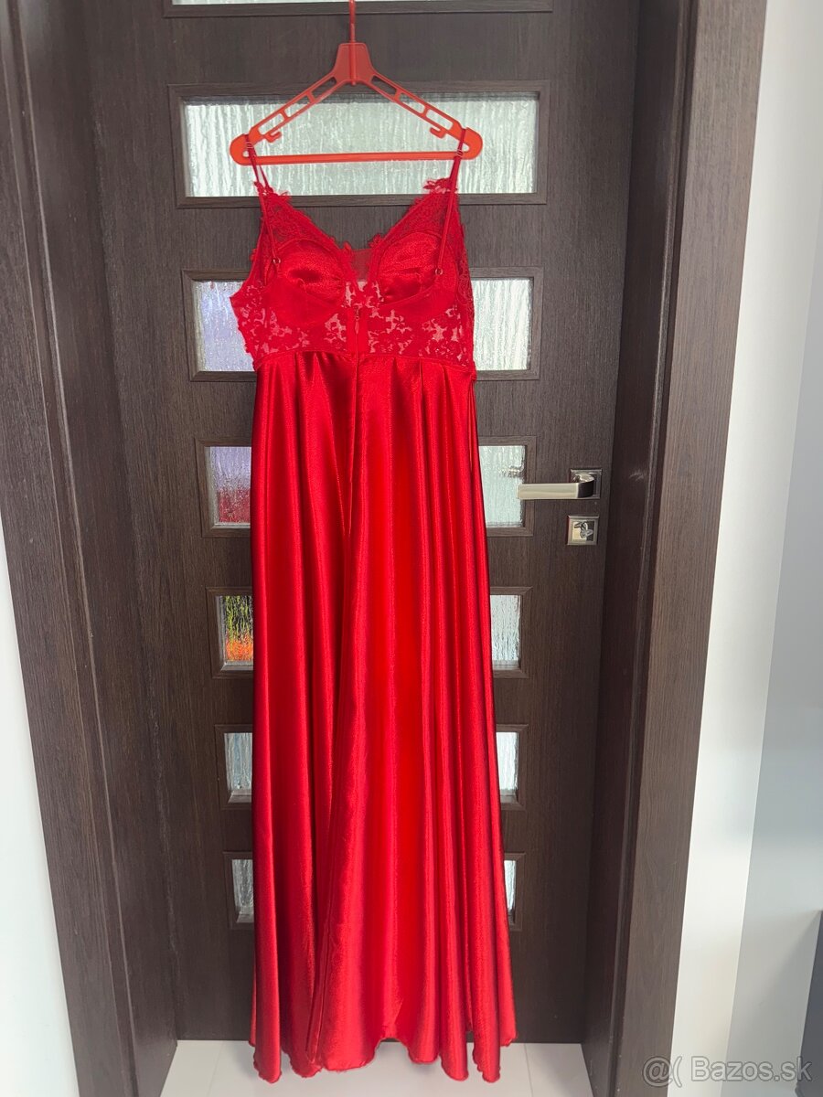 Predám elegantné večerné, slávnostné šaty, ktoré sú nádhernej, výraznej červenej farby. Šaty boli použité len 1 raz. Veľkosť je L, ale sedia aj na M. Pôvodná cena bola 150,00€, teraz ponúkam za 93 eur