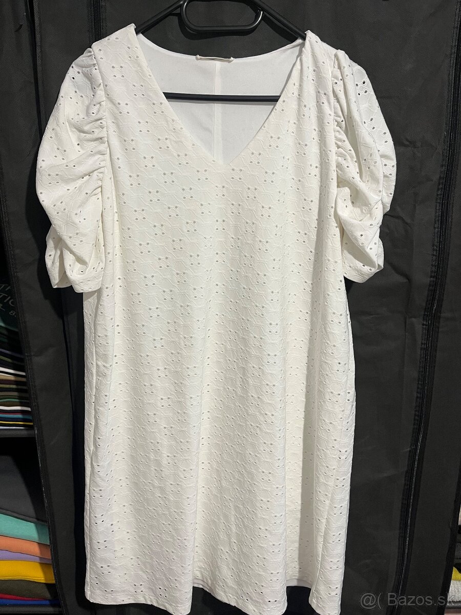Biele dámske šaty, madeirové, s ozdobnými rukávmi, veľkosť M.