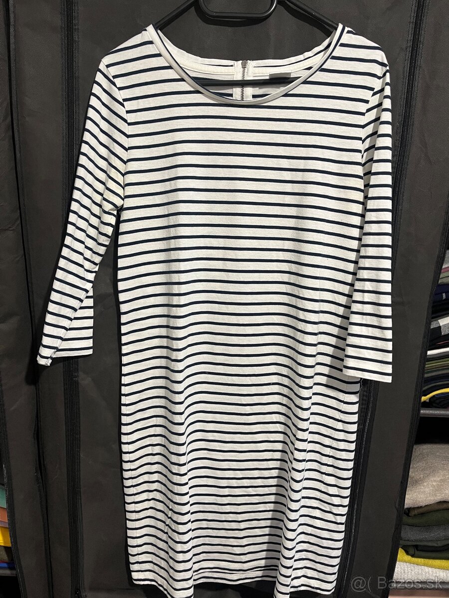 Predám pásikavé šaty, bielo-modrá farba, príjemný materiál, značka Vero Moda, veľkosť 38, zozadu zapínanie na zips