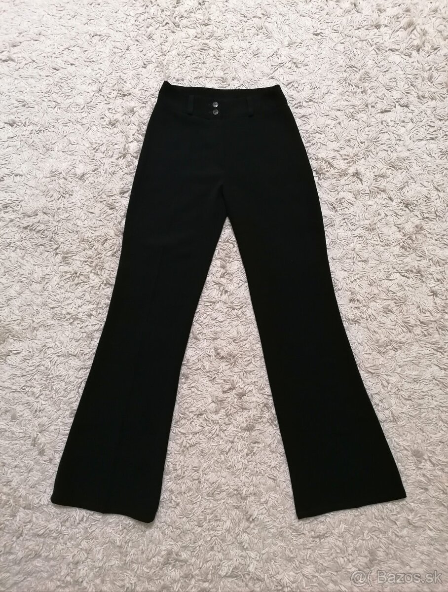 Predám elegantné nohavice v čiernej farbe. Oblečené len na 1 príležitosť, takže skoro nové. Veľkosť je uvedená 38 ale podľa mňa Sko. Rozmery sú pas 2x34cm a dĺžka je 108cm. Maju aj putka na opasok