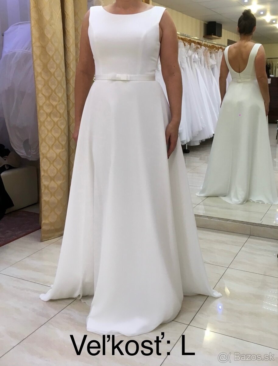 Predám svadobné šaty veľkosť L. Z čistiarne, bez akéhokoľvek poškodenia. Použité len 1 x, kúpené priamo v svadobnom salóne.Cena 290€.