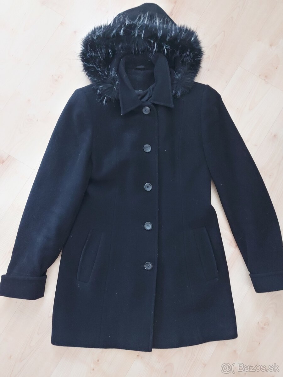 Kvalitný čierny kabát od slovenského výrobcu Odema, veľkosť S, 70% vlna, 20% polyamid, 10% kašmír, kapucňa sa dá odopnúť, je na gombíky, farba je pekná čierna, zle sa fotí, veľmi dobrý stav