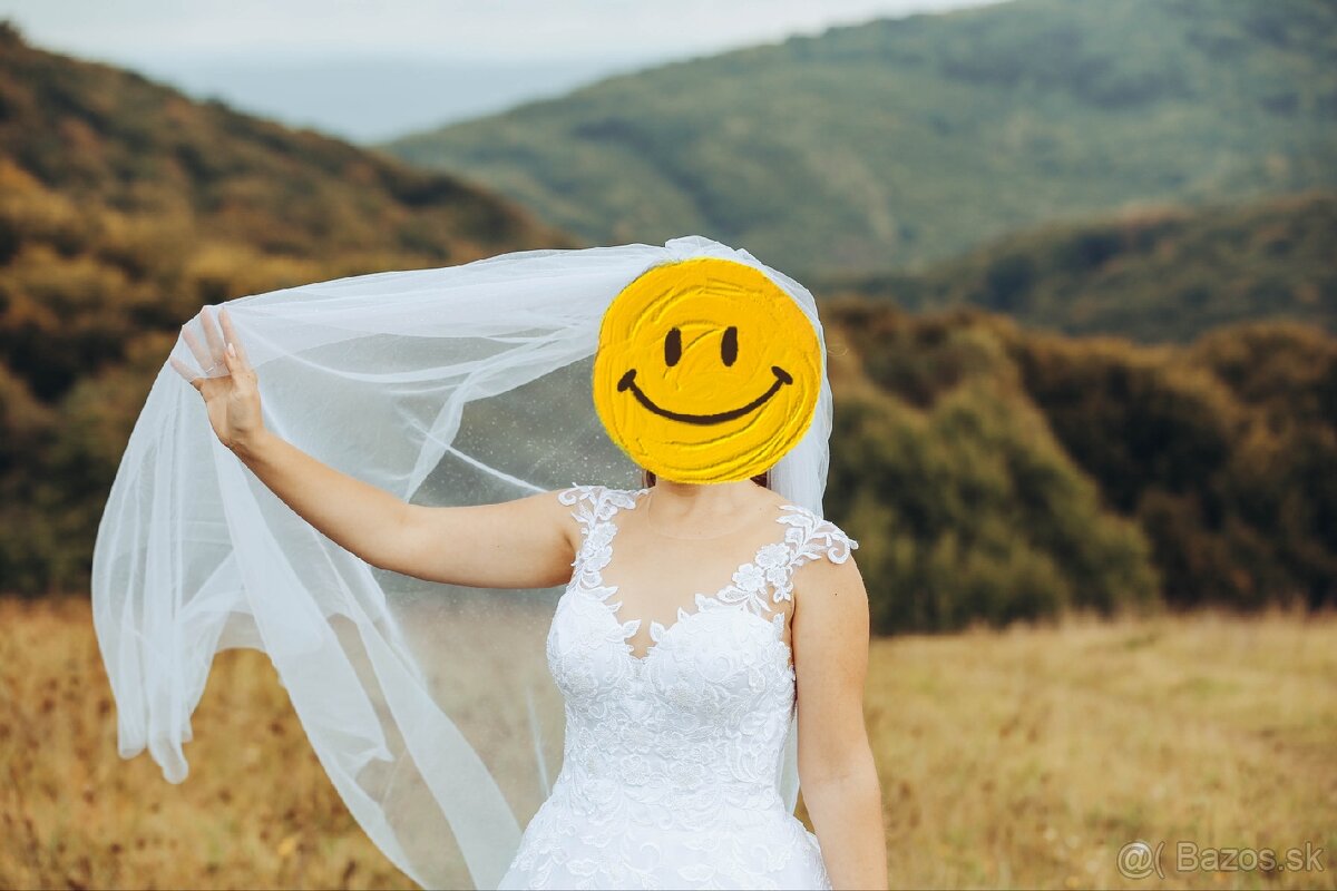 Predám moje nádherné, pohodlné svadobné šaty nastávajúcej neveste. Som prvom majiteľkou, veľkosť by sadla tak na S/M, upravené na útlejšiu postavu s výškou cca 160 cm + cca 5cm opätok. Vzadu sú elegantné gombíky a šnurovačka. Šaty sú ľahučké, moderné a osobne som sa v nich cítila veľmi pohodlné. K šatám pribalim aj kruh a nádherný ľahučký dlhý závoj. Šaty sú krásne biele, žiarivé s jemnými trblietkami a detailmi. Šaty je možné vyskúšať. Cena je 250€ + pri rychlom jednaní možná dohoda na cene.