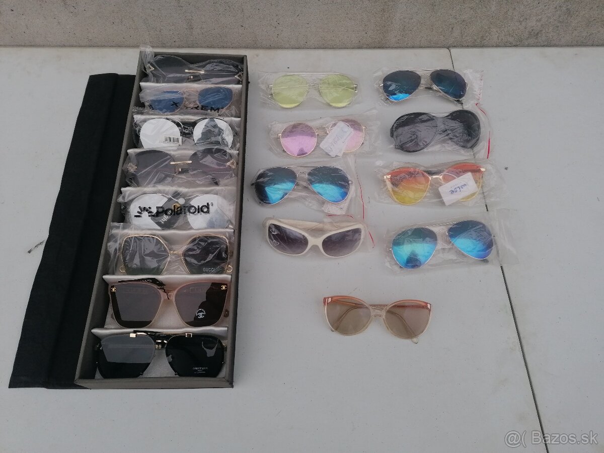 Predám slnečné okuliare. Takmer všetky sú nové, nepoužívané, s visačkami. OBRÁZOK 2: kus 4€. OBRÁZOK 3: zrejme dioptrické- 2€. OBRÁZOK 4,5: úplne nové: kus 9€. OBRÁZOK 6,7,8,9: úplne nové: kus 29€
