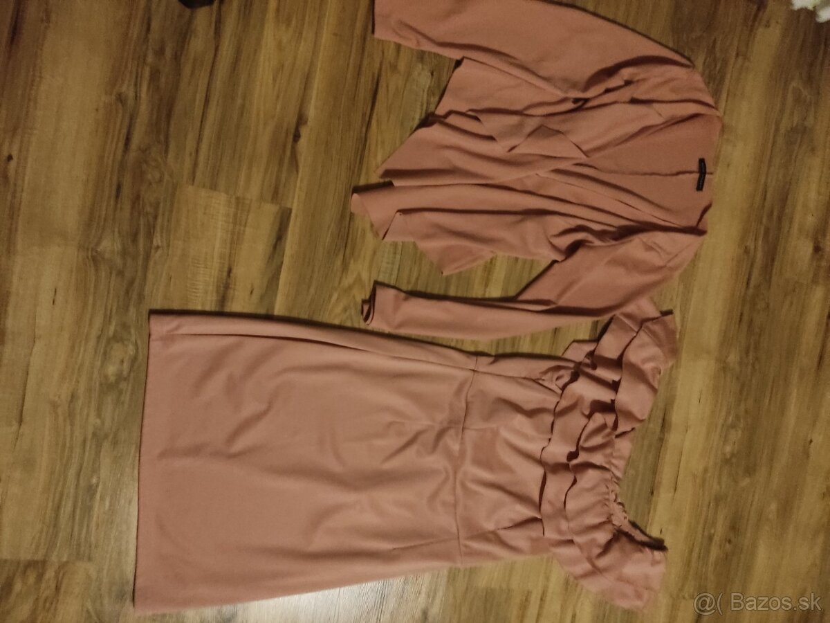 Predám púdrové šaty s kabatikom veľkosť 42 obtiahnuté na postave