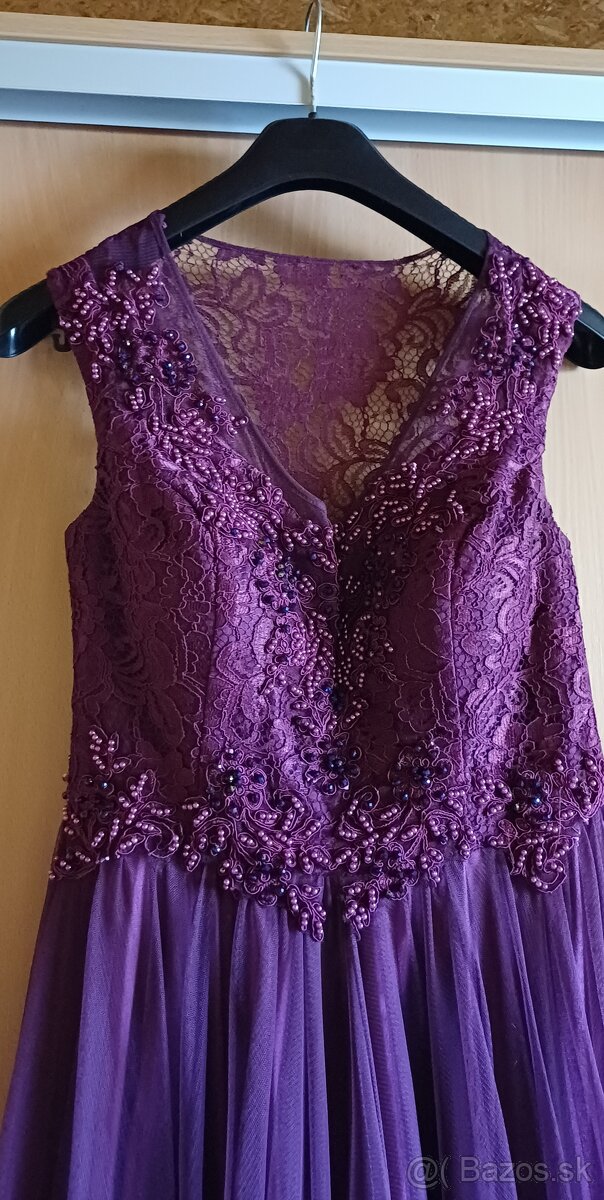 Tmavofialové dlhé spoločenské šaty, raz oblečené, vyčistené v čistiarni, v TOP stave. Značka Michell Fashion, veľkosť 40.