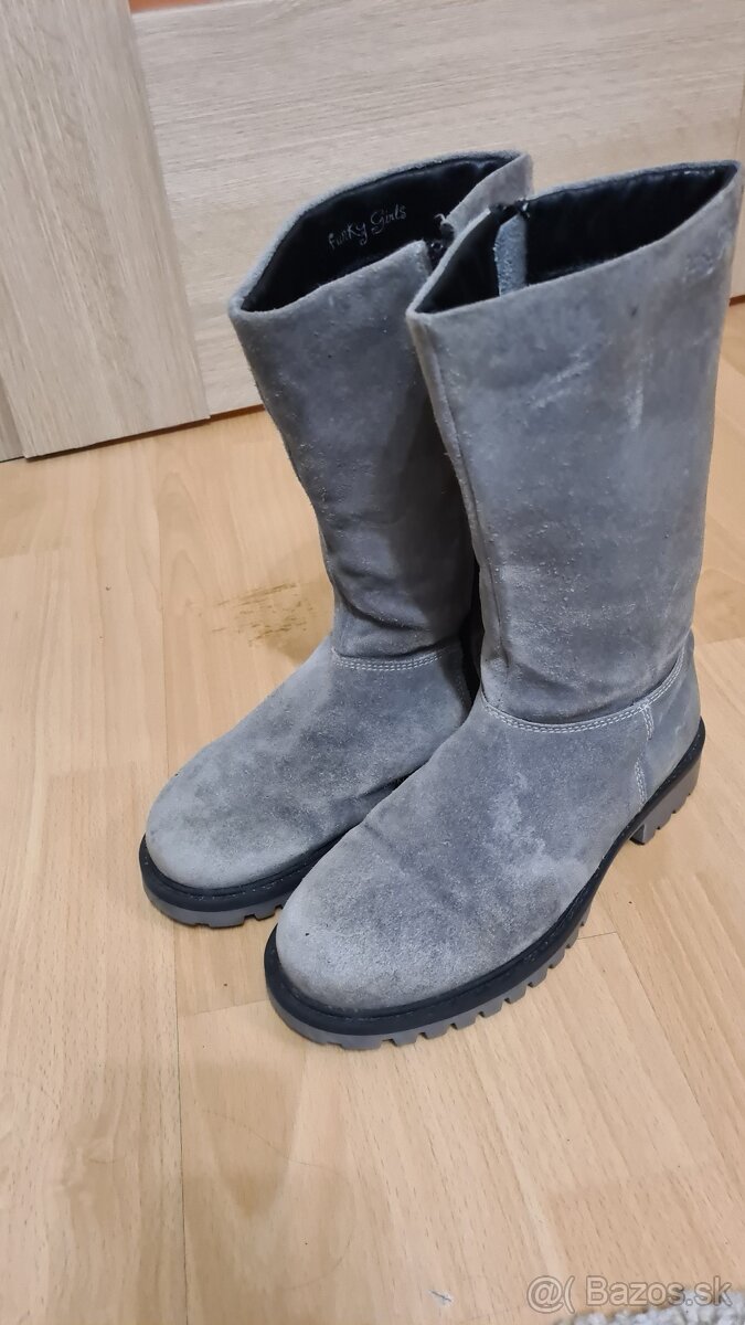 Predám dámske čižmy z brúsenej kože šedej farby vo veľmi dobrom stave. Nosenie je poznať len vnútri na zateplení.
