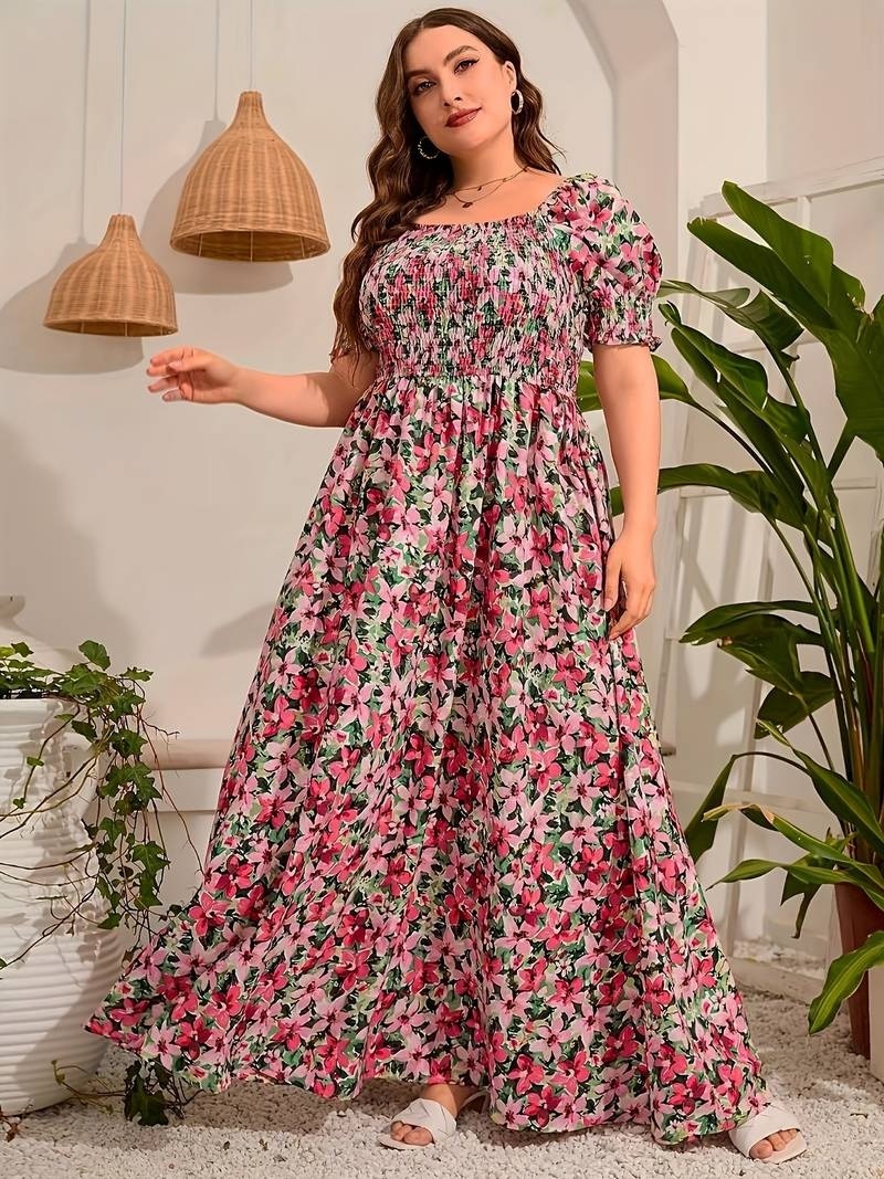 Predám prekrásne Maxi šaty s kvetinovou potlačou s krátkym rukávom na jar a leto, dámske oblečenie nadmernej veľkosti