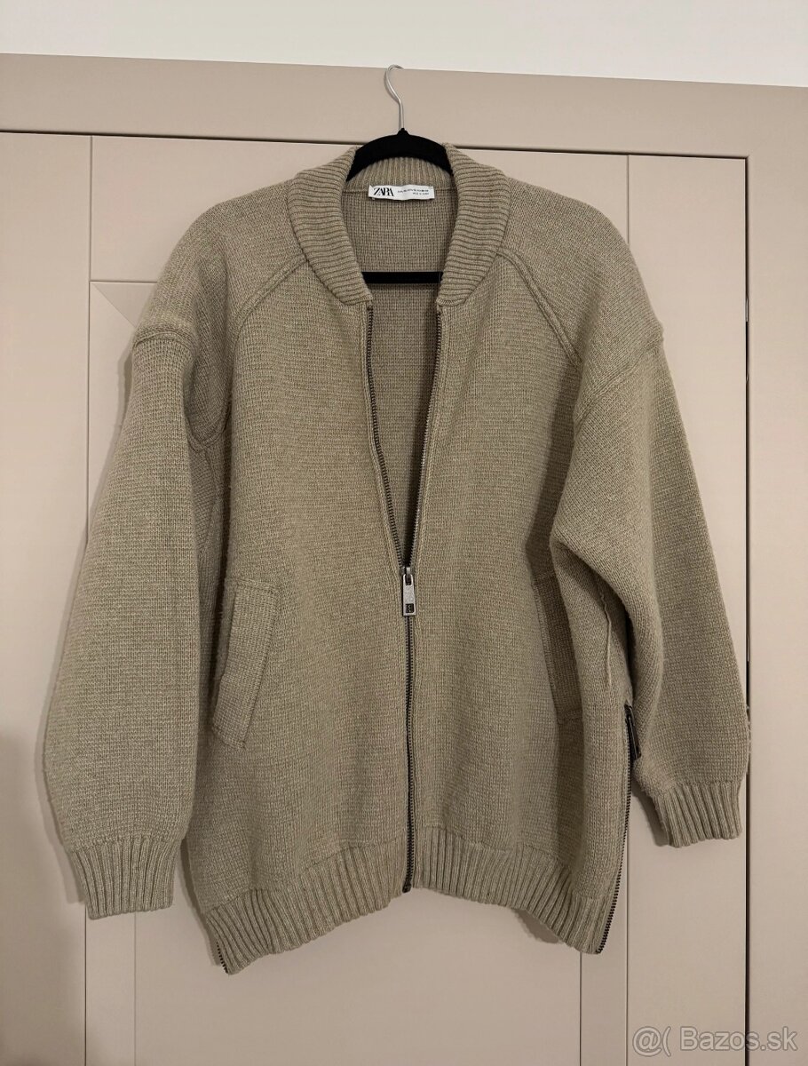 Zara teplý olivový svetrík so zipsom na bokoch. Veľkosť L. Nový, nenosený.