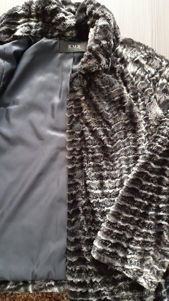 Predám dámsky krátky kabátik z umelej kožušinky, veľkosť 38, dĺžka chrbát 60 cm, šírka pod pazuchami 50 cm, nový, ľahký, mäkký, nepoškodený.