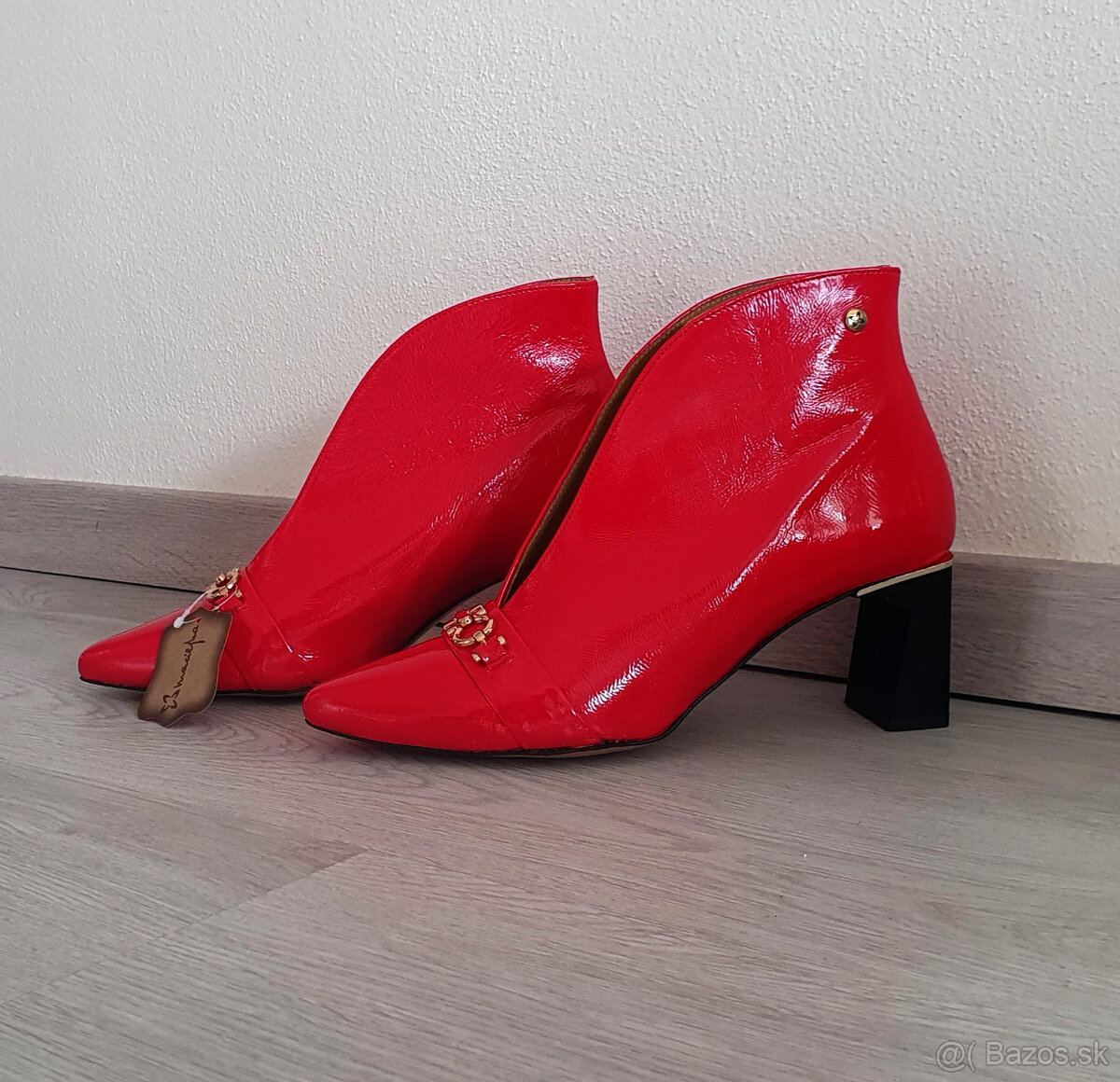 Kožené lodičky Bizzarro, veľ. 39 - [29.11. 2025]Predám celokožené úplne nové nenosené nádherné červené lodičky. Veľkosť 39, výška opätku 10 cm. Značka BIZZARRO. Pôvodná cena 79€. Predám za 59€. Neboli nosené z dôvodu ortopedických problémov. Veľkosť sedí, netlačia a na nohe pôsobia veľmi elegantne.