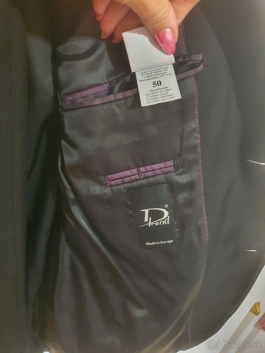 Veľkosť obleku je 52 a veľkosť nohavíc 50. Oblek pasuje na výšku 180cm
