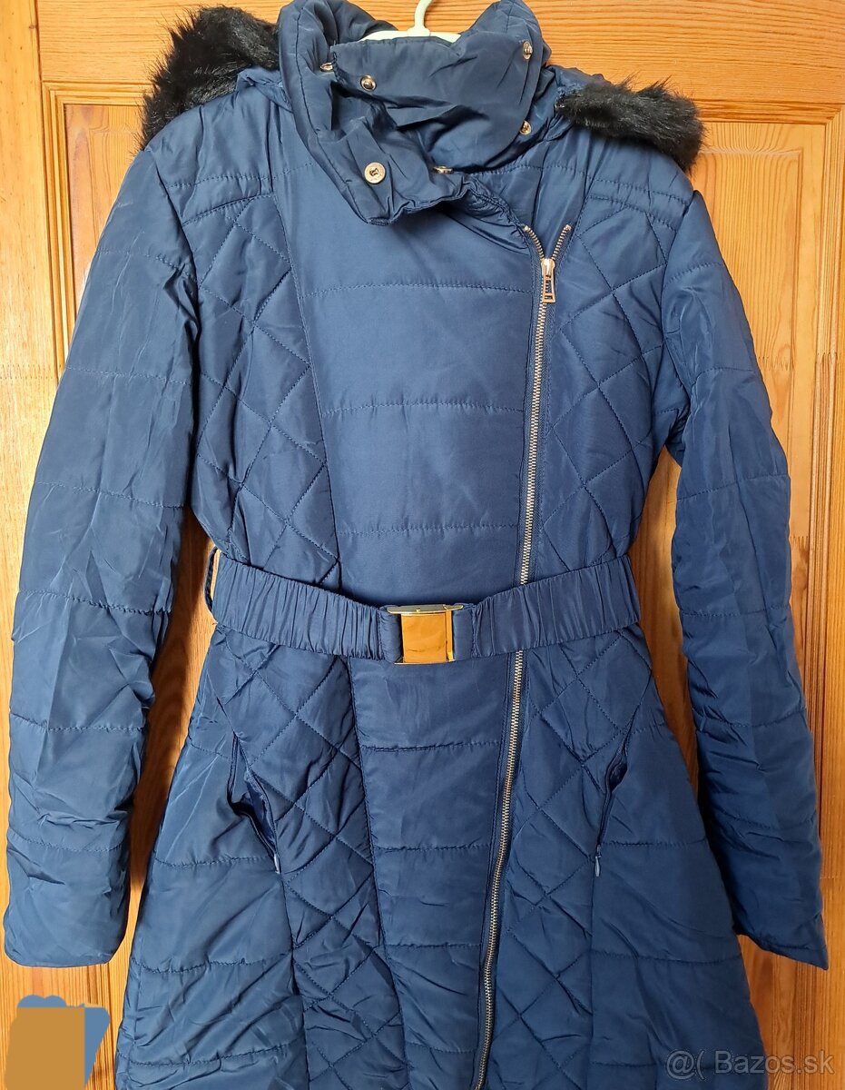Predám zimnú bundu, teplá, málo nosená, tmavomodrej farby s kapucňou, ktorá sa dá odopnúť,cez pás je opasok s prackou, bunda je na zips, ktorý idem krajom bundy, veľkosť S/M, obvod cez prsia do 98cm, dĺžka bundy pod zadok cca 87cm. Cena 45€.